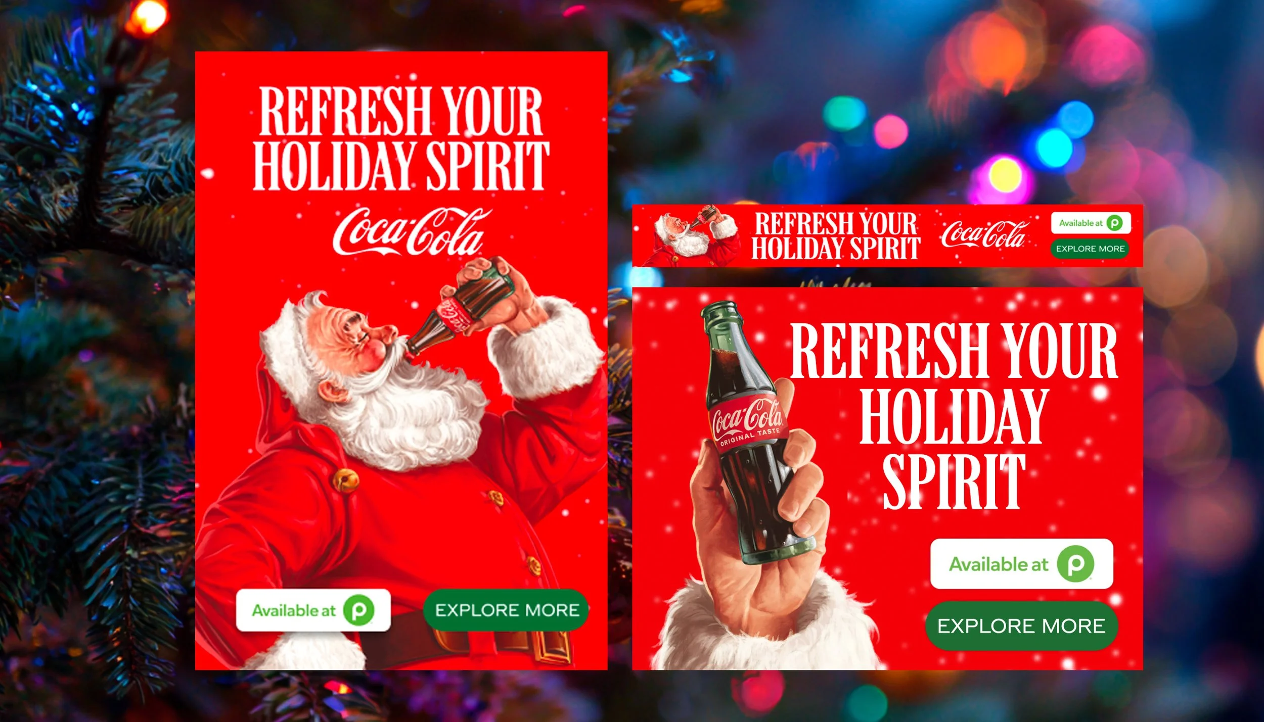 At RR Donelley Agency, I created a series of static and animated ads for the Coca Cola/Publix account’s 2025 Holiday Season.