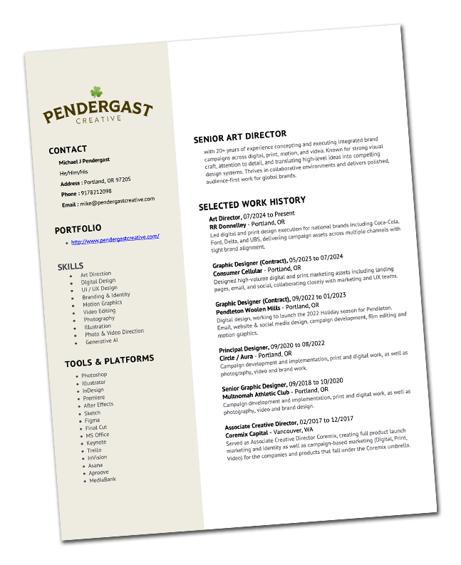 Mike is a creative leader with over two decades of experience turning ideas into stories and brands into experiences. Working across art direction, branding, and marketing strategy, he’s spent his career creating work that connects visually and emotionally. He values collaboration, clear thinking, and bold ideas, and is always looking for smarter, more imaginative ways to solve problems. At heart, Mike is a storyteller—one who believes great design should feel as good as it looks.